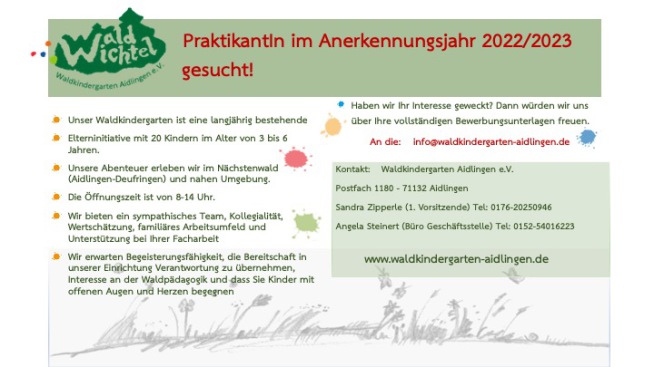 Wir suchen eine/n Anerkennungspraktikanten/praktikantin für 2022/23