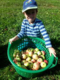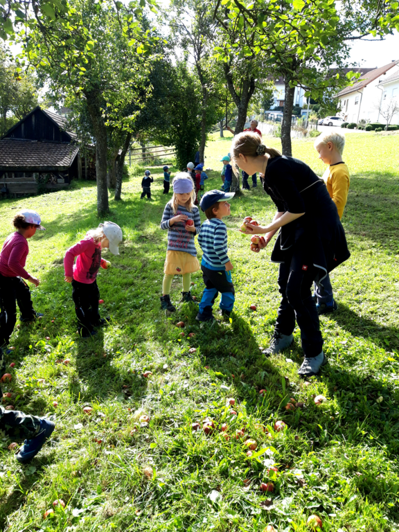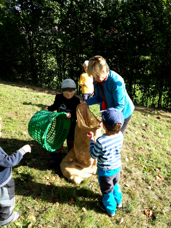 Anschließend kamen die Äpfel an die Reihe. Wieder waren es Bäume von Hannes’ und Felix’ Opa Bernd, die geschüttelt wurden und alle Waldwichtel haben kräftig beim Aufsammeln geholfen, so dass am Ende des Tages drei Säcke gefüllt waren. Auch einzelne Familien haben Äpfel gespendet, sie warten nun im Bauwagen auf die Apfelpresse, damit wir unseren eigenen Apfelsaft produzieren können.
