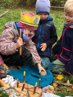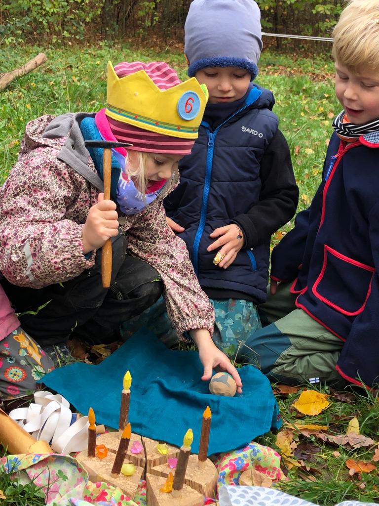 Auch zwei Geburtstagskinder bescherte uns der November: Bella und Karl wurden beiden 6 Jahre alt. Im Geburtstagsbollerwagen wird dann das Kind von seinen Freunden und Freundinnen durch den Wald gezogen und das neue Geburtstagsgeschenk, die Tonkugel mit Edelsteinfüllung, sind immer ganz besondere Höhepunkte.