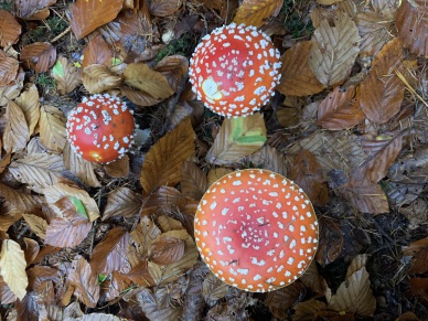 Und wenn wir dort unterwegs sind, gibt es jede Menge Schönes zu entdecken. Besonders Pilze gab es in diesem Herbst in riesiger Zahl, in allen erdenklichen Farben und Formen. Und kurz vor den Herbstferien haben wir, in der Nähe der Wildschweinsuhle, eine Stelle entdeckt, in der es ein Meer von Fliegenpilzen gab, wunderschön. Auf dem Foto könnt ihr einen der schönen Pilze sehen.