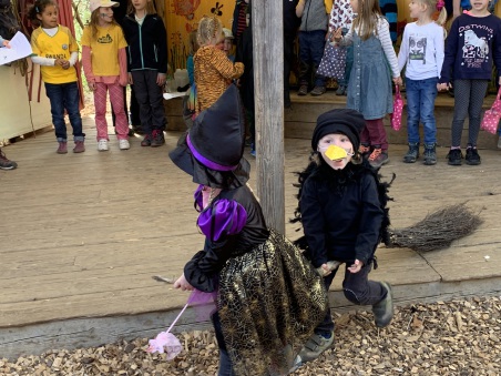 Wir Waldwichtel probten unser Hexenlied, das wir an diesem Festtag zum Vortrag bringen wollten, die Waldstationen wurden vorbereitet.
