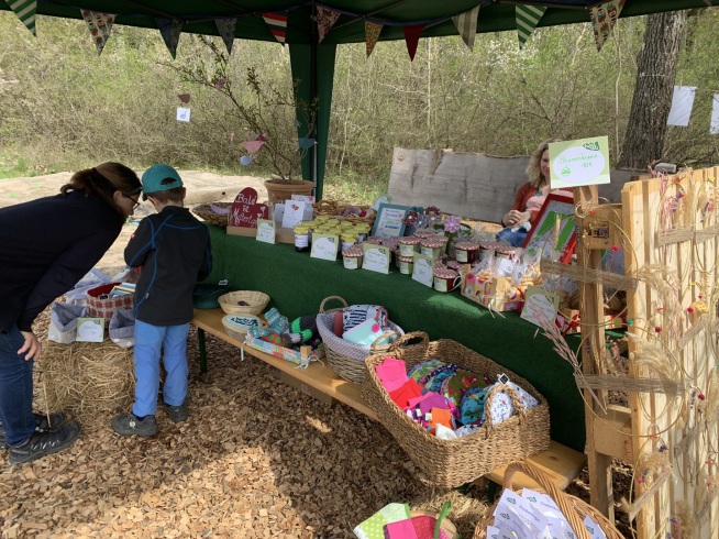 Fleißige Mamahände, mit Kinder Unterstützung, werkelten viele kleine Überraschungen, die am Waldfest zum Verkauf angeboten werden sollten.