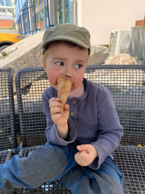 An einem Tag organisierte uns Helen, vor der Abholzeit, Eis am Stiel an den Bauwagenplatz. Und dann unternahmen wir auch noch einen kleinen Ausflug zur Eisdiele „Angelo“ nach Aidlingen. Dank sei Opa Rottler, der uns vor einigen Wochen, einen sehr großzügigen Gutschein für die Eisdiele überreicht hatte. So konnte jeder von uns eine Kugel Eis genießen. Bei den sommerlichen Temperaturen hat es natürlich besonders gut geschmeckt. Herrlich, so lassen sich sommerliche Tage wunderbar aushalten.