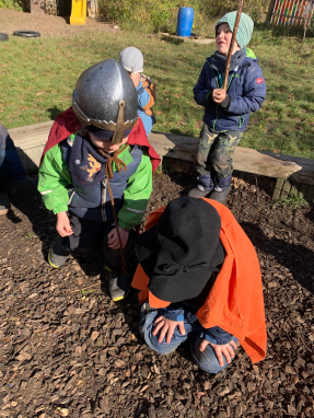 Der „Martinstag“ und das damit verbundene Laternenfest. Die kleinen Rabenkinder Cleo, Elfi, Luise und Oskar haben ihre Laternen fertig gestellt, damit auch sie beim Laternenumzug, durch den nächtlichen Wald, ein Licht vor sich her tragen können. Wir haben die Martinslegende gemeinsam gelesen und nachgespielt. Über das „einander helfen“ und „teilen“ gesprochen. Haben überlegt, wo wir in unserem Alltag anderen Menschen helfen konnten und schon einmal geteilt haben. Laternenlieder wurden gesungen und nun zählen wir die Tage bis zum Laterenumzug am 17.11.