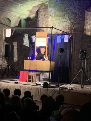 So lautete der Titel des wunderschönen Kindertheaterstückes, das wir ebenfalls im November im Deufringer Schlosskeller erleben durften. Im Rahmen des Kinder- und Jugendtheaterfestivals, spielte das Spielraum Theater Kassel dieses Stück. Es handelte vom Postboten Jean Jacques, der dafür zuständig ist, dem Weihnachtsmann die Wunschzettel der Kinder zu übergeben. Und an jenem Morgen passierte ihm ein großes Missgeschick, er stürzte mit seinem Fahrrad in einen Teich und die Wunschzettel waren allesamt durchnässt. Die anwesenden Kindergartenkinder durften helfen, die Texte der Wunschzettel wieder zu entziffern, damit am Weihnachtsabend auf keinen Fall etwas Falsches unter dem Christbaum liegen würde. Und der freundliche Postbote erzählte uns auch noch von einem ganz besonderen Erlebnis, das er als kleiner Junge mit dem Weihnachtsmann hatte. Eine schöne, warmherzige Geschichte, die uns alle ganz schnell in vorweihnachtliche Stimmung versetzte, denn, tatsächlich, die Weihnachtszeit ist nicht mehr weit!