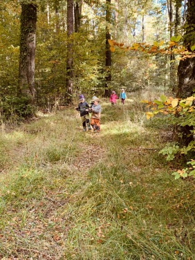 Gleich zu Beginn des Monats machten wir uns auf nach Ehningen, um am Bodemer Hof Kartoffel zu ernten. Landwirt Jochen Bodemer erntete an diesem Tag einen Acker mit Kartoffeln ab und wir durften aufsammeln, was in unsere mitgebrachten Beutelchen passte. Wieder war es ein tolles Erlebnis, und zum krönenden Abschluss fuhr uns Felix’ und Elfi’s Papa Jan, mit Traktor und Planwagen, zurück zum Spielplatz in Ehningen, wo wir von unseren Eltern wieder eingesammelt wurden. Das war ein super Spaß!