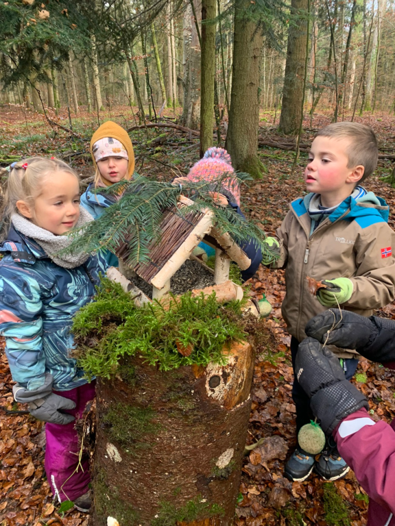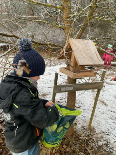 Vor der Weihnachtsfeier haben wir am „Räuberweg“ noch eine Futterstelle für die Vögel errichtet.