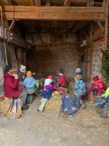 Fast täglich bekommen wir im Dezember von Helen, Regina oder Petra, kurz vor der Abholzeit, eine weitere kleine Geschichte vorgespielt, in der wir Maria und Josef auf ihrem langen Weg nach Bethlehem begleiten können.