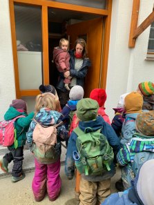 Doch leider hatten wir bei all den freundlichen Menschen, die uns ihre Türe öffneten, kein Glück: „Wir wollen gerade einkaufen gehen.“ „Für 15 Menschen ist der Platz zu klein.“ Natürlich, wir hatten großes Verständnis, denn so viele kleine Waldwichtel, mit schmutzigen Schuhen und Hosen, sind wirklich nicht einfach unterzubringen.