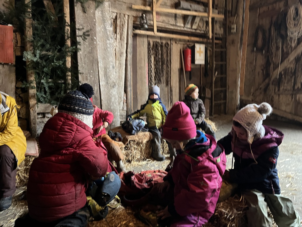 Opa Bernd und Oma Lissy, öffneten für uns die Tür zum alten Stall und dort konnten wir, auf Strohballen sitzend, an diesem eisigen Dezembertag, gemütlich essen. Welch eine Freude!