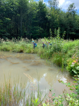 Und selbstverständlich haben wir das warme Sommerwetter auch für einen Besuch der tollen Bachstelle bei Gechingen genutzt. Mit dem Bus von Dachtel zur Bergsiedlung Gechingen und dann zu Fuß bergab, bis zum Bachbecken, das so wunderbar zum planschen einlädt. Mit selbst gemachten Booten aus Korken, Taucherbrillen, Wasserspritzen und Kescher im Gepäck, lässt es sich dort, an einem heißen Tag, ganz wunderbar aushalten.