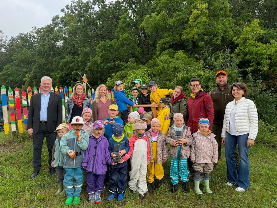 Ein besonderer Dank geht in diesem Monat an die Raiffeisenbank Aidlingen eG, die unserem Waldkindergarten zwei Wildtierkameras gespendet hat. Diese wurden uns von der Raiffeisenbank, gemeinsam mit Ortsvorsteherin Kühnle und Jagdpächter Marc Lachenmann, überreicht. Marc Lachenmann hat eigens für dieses Projekt, einen kleinen Jagdsitz für uns gebaut, der nun am „Zwergenplatz“ seinen Platz gefunden hat und natürlich sehr gerne erklettert wird. Regelmäßig werden uns von Herrn Lachenmann zukünftig Fotos von den Wildkameras zugesandt. So erleben wir, was nachts im Nächstenwald so alles passiert. Denn tagsüber nehmen Rehe, Füchse und Wildschweine lieber „Reißaus“, wenn sie uns von Weitem hören. An dieser Stelle noch einmal herzlichen Dank für die tolle Spende und das Engagement von Herrn Lachenmann.