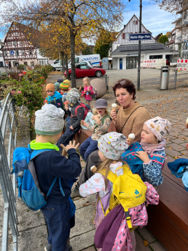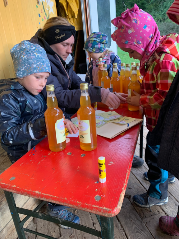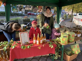 Gleich zu Beginn des Monats fand der Apfelsaft Verkauf auf dem Aidlingen Rathausplatz statt. Wie ihr wisst, wurden im September fleißig, viele Säcke Äpfel geerntet und daraus goldgelber Saft gepresst. Und diese große Ausbeute an Flaschen und Bag in Boxes, haben wir vor dem Rathaus zum Verkauf angeboten. Wir waren am Ende des Vormittages sehr zufrieden. Viele Menschen waren gekommen und haben sich mit unserem köstlichen Saft eingedeckt. Dankeschön, wir haben uns sehr gefreut und die Waldwichtel, die beim Verkauf halfen, hatten großen Spaß am Kassieren und Rechnen.