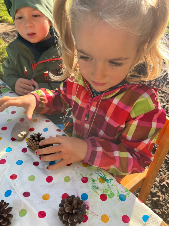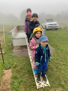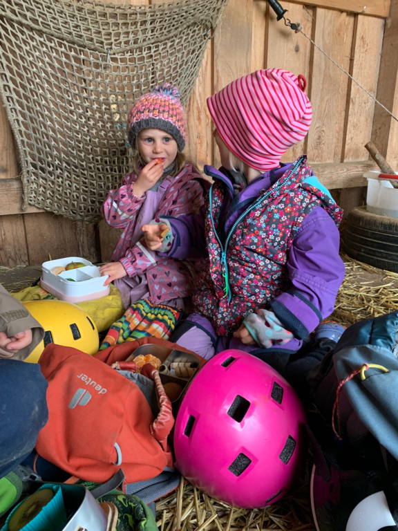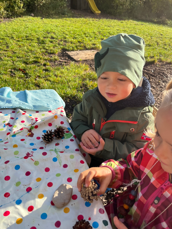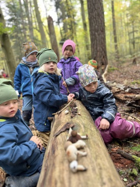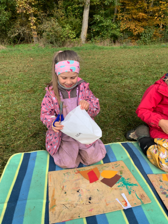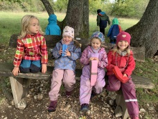 Seit Beginn des Kindergartenjahres finden donnerstags wieder unsere sogenannten altershomogenen Gruppen statt. Einfach erklärt: Die Kleinsten (Rabenkinder), die Mittleren (Igelkinder) und die Großen (Bärenkinder), treffen sich in ihrer Gruppe, mit Helen, Regina, oder Petra zusammen und erleben in dieser Runde ein Angebot. Heute wollen wir davon berichten, was die Igelkinder seit September so alles angestellt haben. Da gab es beispielsweise den Donnerstag, an dem wir den Eichhörnchen im Wald jeden Menge Haselnüsse bereit belegt haben. Immer zu zweit sollten wir eine Eichhörnchen Futterstelle richten, aus Moos, Ästen, ganz nach Lust und Laune, in die wir viele, viele Haselnüsse aus Petra's Garten gelegt haben. Nach ein paar Tagen, wir haben natürlich nachgesehen, waren alle Nüsse fort. Sicher haben wir den Eichhörnchen geholfen, einen schönen Wintervorrat anzulegen.