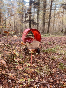 Mindestens einmal im Kindergartenjahr findet ein Ausflug auf den Venusberg bei Lehenweiler statt. Die Landschaft dort ist einfach zu schön und die drei, etwas versteckten Ruinen, denen wir jedes Mal einen Besuch abstatten müssen, sind ganz besonders spannend und aufregend. Und so waren wir auch Anfang Oktober in der Heidelandschaft unterwegs. Jede Menge schöne Pilze haben wir entdeckt, Wiesenchampignons, Boviste und Butterpilze. Auch dunkelrote Hagebutten wanderten in die Jackentaschen.