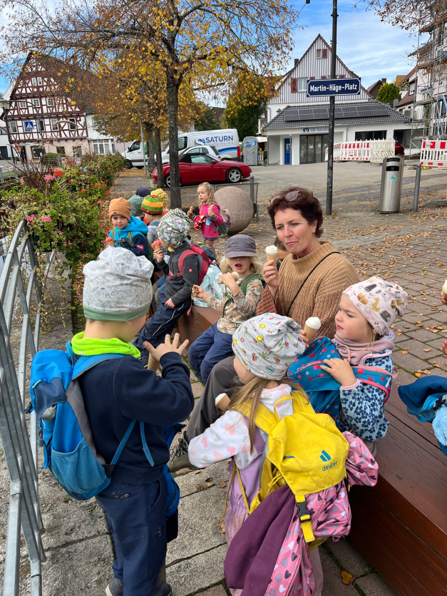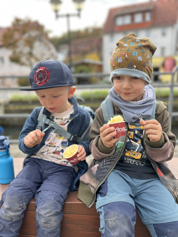 Doch zuvor fuhren wir mit dem Bus, ab der Haltestelle Rathaus Deufringen, nach Aidlingen, zum Spielplatz an der Schafhauser Straße. Dort konnte nach Herzenslust gerutscht und geklettert, geschaukelt und gewippt werden, bevor es zu Fuß wieder zurück, zur Eisdiele Angelo ging. Schon im Vorfeld wurde diskutiert welche Sorte heute die Richtige wäre, Vanille, Erdbeere, oder doch lieber Blutorange?