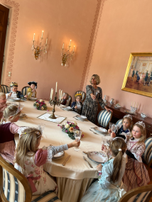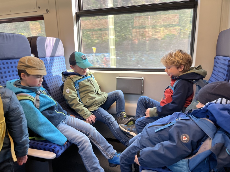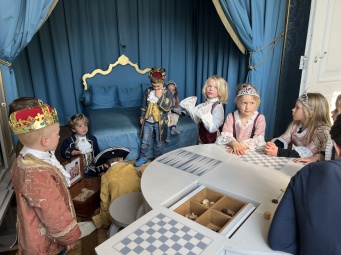 Zu Beginn des Monats April waren wir unterwegs - nicht im Nächstenwald, sondern im Ludwigsburger Residenzschloss. Genauer gesagt im „Kinderreich“. Mit Bahn und Bus ging es von Gärtringen nach Ludwigsburg. Aufregend, diese lange Reise. Am Residenzschloss angekommen, ließen wir uns im Innenhof noch unser Vesper schmecken, bevor wir von Frau Stein abgeholt und ins sogenannte „Kinderreich“ geführt wurden. Der Teil des Schlosses, der nur für Kinder reserviert ist. Dort konnten wir intensiv in längst vergangene Zeiten eintauchen. In Zeiten, als im Ludwigsburger Schloss noch Könige, Prinzessinnen, Prinzen, Herzöge und Herzoginnen residierten.