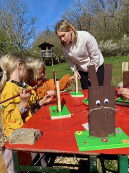 Jeder Waldwichtel hatte die Qual der Wahl und konnte sich, nach ausgiebigem Überlegen, für sein Lieblingsangebot entscheiden. Und vergangene Woche ging's dann los. Es durfte sorgfältig geschnitten, beherzt abgeschliffen, kräftig gepinselt und freudig mit Kleister gepantscht werden. Alle hatten ihre Freude am Herstellen und schließlich am fertigen Werk. Und auf den Fotos könnt ihr sehen, was und wie wir gearbeitet haben.