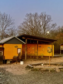 Bolzplatz. Auch hier finden wir viele, viele Möglichkeiten uns zu beschäftigen. Um 12 Uhr