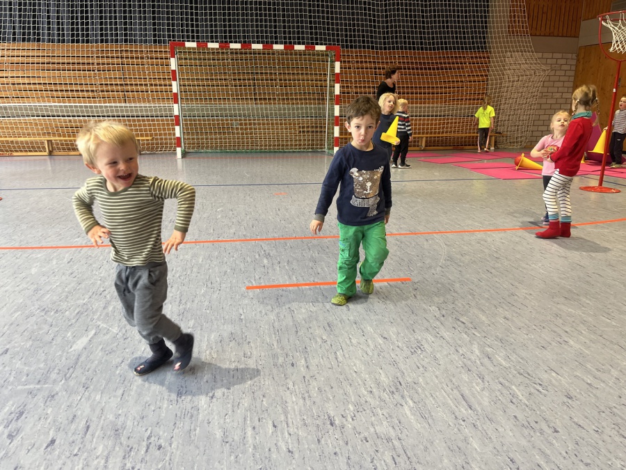 Es läuft Musik von unserer Freitagsturnen Playlist und wir bewegen uns durch den Raum.