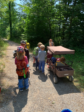 Anfang des Monats hat der Sommer noch aus dem Vollen geschöpft. Es war heiß, richtig heiß. Und so wir haben überlegt, wie wir diese hochsommerlichen Tage gut überstehen könnten. Die Lösung war einfach - mit ausreichend Planschmöglichkeiten. Und deshalb ging es an einem der Hitzetage zu unserer Lieblingsbachstelle nach Gechingen. Mit dem Bus bis zum Gechinger Rathaus und dann noch ein Stück zu Fuß. Dort konnten wir den heißen Tag hervorragend aushalten, denn das Wasser war wunderbar kühl. Dazu noch ein Eis zum Ende des Kindergartentages - was will man mehr! An den nächsten beiden Tagen haben wir die letzte Stunde des Tages, mit vielen gefüllten Wasserbottichen, unter dem Dach der Terrasse am Bauwagen verbracht. Zwar schenkt uns der Wald seinen Schatten, aber das Spritzen mit dem kühlen Nass, brachte zum Ende der Kindergarten Tage eine wohltuende Abkühlung, die wir sehr genossen haben!
