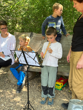 So langsam neigt sich für die vier großen Bärenkinder, Magdalena, Felix, Hannes und Tim die Kindergartenzeit ihrem Ende entgegen. Doch bevor sie ab dem Herbst die Schulbank drücken werden, gab es für die Vier noch zwei ganz besondere Events. Beim Flötenkonzert konnten sie zeigen, was sie in den vergangenen Monaten gelernt hatten. Jeder durfte zwei Solo Stücke zum Besten geben, es gab Duette und ein Quartett. Der Applaus der Eltern und der anderen Waldwichtel war ihnen am Ende sicher.