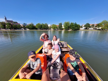 Mit dem VW Bus ging es nach Böblingen zum Oberen See, wo wir alle gemeinsam ein Tretboot bestiegen haben und über den See geschippert sind. Enten und Gänse haben uns umrundet, die Sonne schien - wunderbar! Anschließend gab es selbstverständlich ein Eis und dann ging’s noch eine Runde auf den nahen Spielplatz.