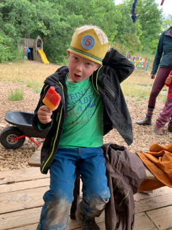 Außerdem gab es diesen Monat auch einige Geburtstagskinder: Helen, Jakob und Oskar haben im Kindergarten gefeiert, mit allem was dazu gehört: Kuchen, Pizzaschnecken, Eis, Kasperltheater, Wunschrakete und als Geschenk die kleine, grüne Schaufel, die jetzt, zum Ende des Kindergartenjahres, an allen Rucksäcken baumelt. Alles Gute euch!