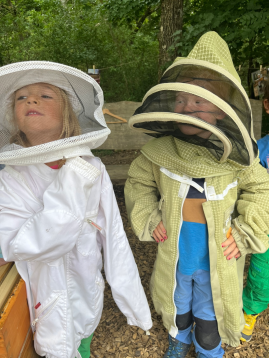 Wir durften selbst einmal die Imkerjacke und den Schleier schlüpfen und am Ende des Tages seinen mitgebrachten Honig auf frischem Brot probieren. Toll! Ganz zum Abschluss haben wir noch gewerkelt. Mit Hilfe von Eisstielen, einem Gummi und einer langen Schnur, haben wir eine „Summ“ Schleuder hergestellt. Wenn du sie ganz doll im Kreis schwingst, summt sie wie eine Biene. Und wenn alle Waldwichtel gemeinsam schwingen, klingt es wie in einem großen Bienenschwarm. Ein spannender Vormittag, vielen Dank Manu, dass du bei uns warst!