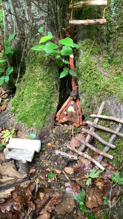 Anfang des Monats hat, gleich „Hinter der Rakete“, nahe an unserem Bauwagenplatz, Snorre Einzug gehalten. Er ist ein kleiner Wichtel und hat darum gebeten, in unserer Nähe wohnen zu dürfen. Und selbstverständlich haben wir diesem Wunsch freudig zugestimmt. Nun steht sein kleines Wichtelhaus, samt Tisch, Stuhl, Bank, Hängeleiter und Briefkasten, am Eingang des Nächstenwaldes. Wenn wir ihm Post in seinen kleinen Briefkasten stecken, bekommen wir einen Antwortbrief von ihm und erfahren auf diese Weise auch ein wenig über sein Wichtel Leben. Er erzählt von den Tieren die ihn besuchen, freut sich über Bilder die wir ihm malen und hat uns vor kurzem tatsächlich eine kleine Flasche Holunderblüten Sirup vor seinem Haus bereit gestellt.