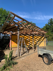 Gleichzeitig wurde unser altes Terrassendach und die Terrasse abgebaut, damit der ausgediente Bauwagen abgeschleppt werden kann. Wir freuen uns riesig seit dieser Woche unseren neuen Platz mit Leben zu füllen und sind uns sicher, dass wir uns dort genau so wohl fühlen werden, wie die letzten 25 Jahre auf dem alten Platz.