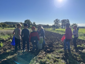 Im Kindergarten werden wir, zum Ende der Erntezeit, noch ein Kartoffelfeuer entzünden, die übrigen Kartoffeln in der Glut rösten und sie uns mit Kräuterquark schmecken lassen - lecker! An dieser Stelle nochmal ein dickes Dankeschön an Onkel Christian, dass er uns an seiner Kartoffelernte teilhaben ließ!