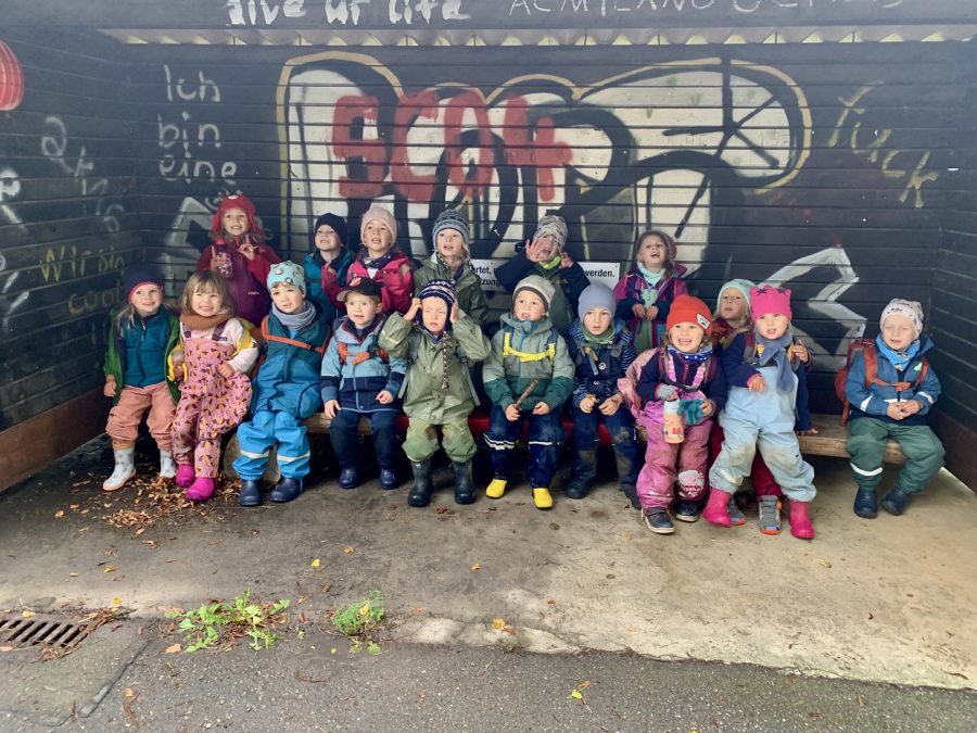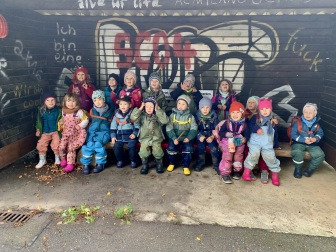 Der Monat September präsentierte sich als erster richtiger Herbstmonat, mit Regen, Nebel, angenehmen Sonnentagen, Laub, das sich allmählich verfärbt und langsam auf den Waldboden schwebt. Das Lied „Wir denken nicht daran, uns einen Schirm zu kaufen, wir haben Spaß daran, im Regen rumzulaufen, dann sind wir eben nass, dann sind wir eben nass …“, konnten wir in diesem Monat des öfteren im Morgenkreis singen. Und in solch einem Fall hilft nur eines: gute Regenkleidung. Und die haben wir. Und so ging es, trotz der Nässe von oben, quer durch den Wald: Pfützen hüpfen, Regenwürmer und Pilze entdecken und Schnecken finden. Regenwetter kann unsere gute Laune (fast) nicht verderben.